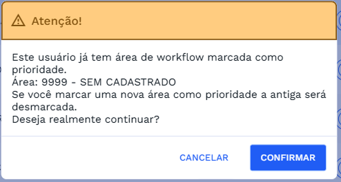 Não é possível existir mais de uma área com prioridade. Se você selecionar uma segunda área o sistema irá apresentar uma janela com o aviso perguntando se você desejar alterar a prioridade da área.